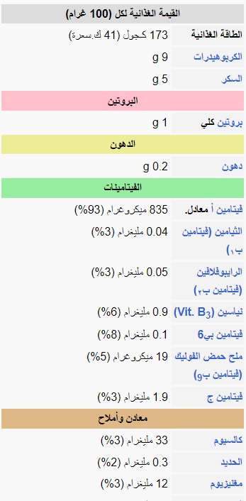 • يتميز بنسبة عالية من فيتامين PP الذي يندر أن يوجد في غيره من الخضروات.