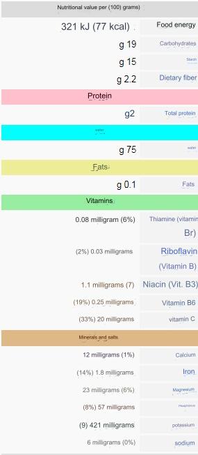 According to the U.S. Department of Agriculture (USDA), every 100 grams of boiled potatoes (without skin) contains: